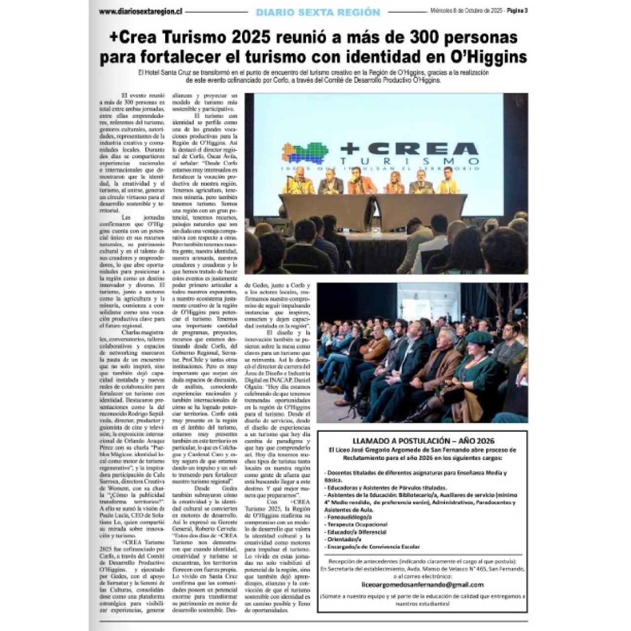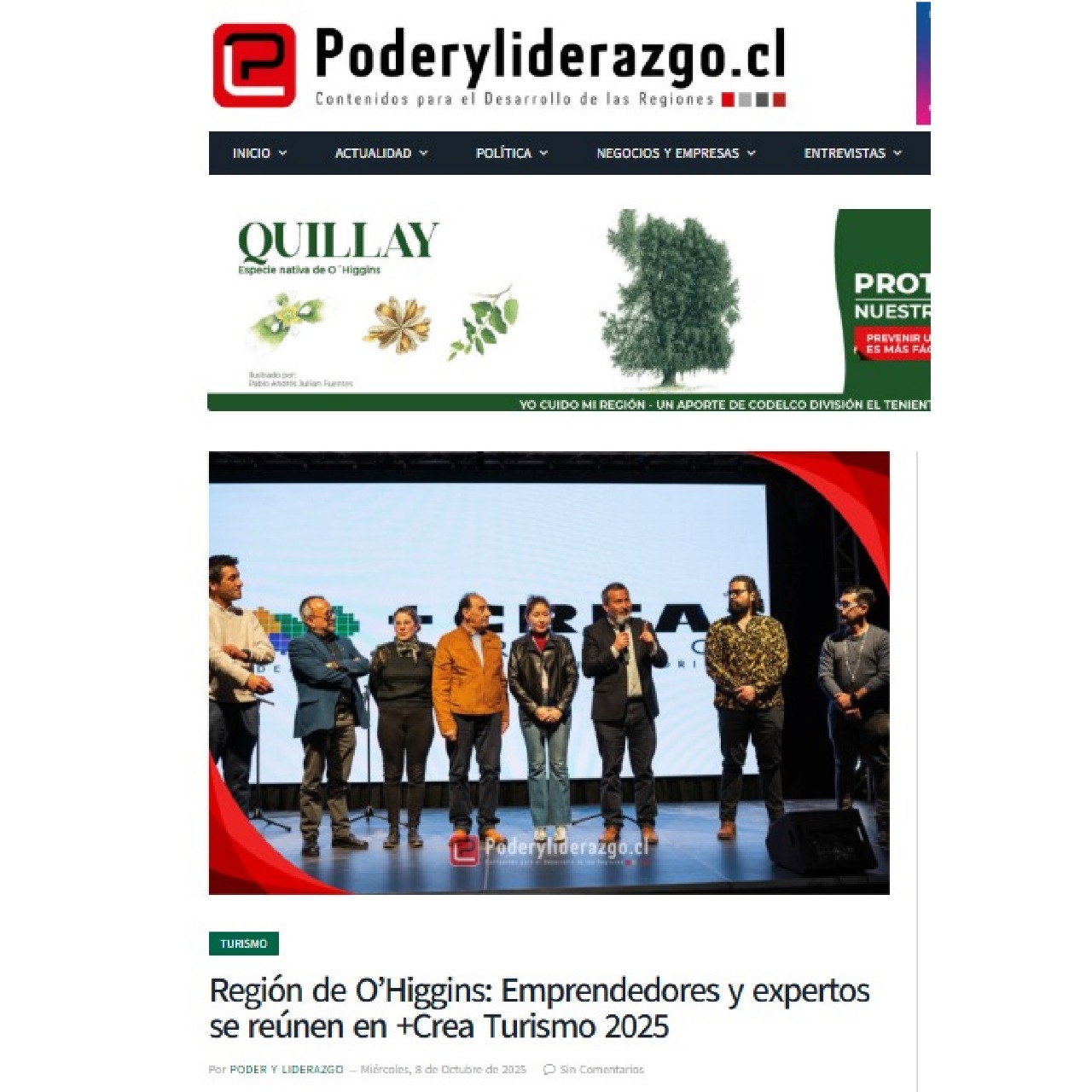 https://www.poderyliderazgo.cl/region-de-ohiggins-emprendedores-y-expertos-se-reunen-en-crea-turismo-2025/https://www.tusnoticias.cl/crea-turismo-fortalece-el-turismo-con-identidad-en-ohiggins/