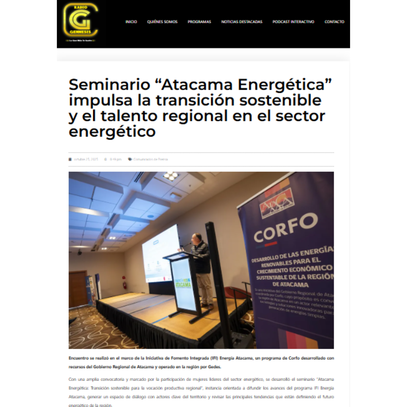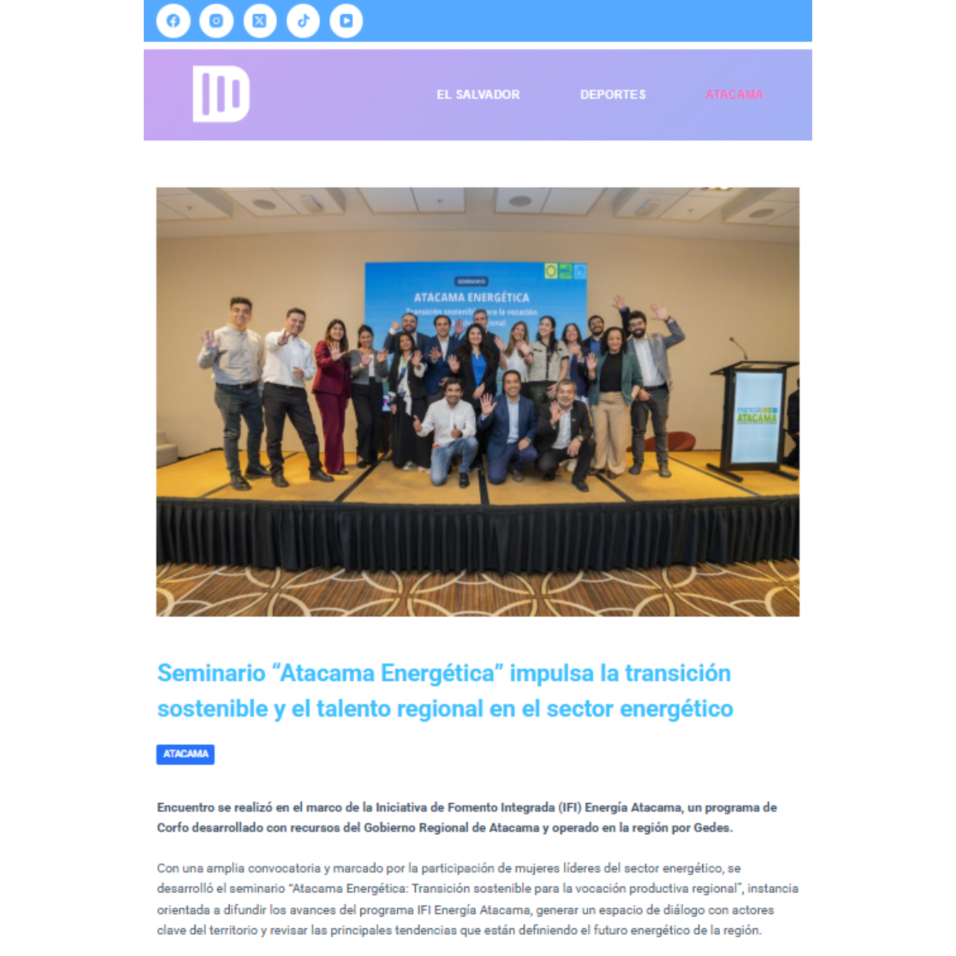 El seminario “Atacama Energética” se consolidó como un espacio clave para el intercambio de conocimientos, la promoción del liderazgo femenino y la articulación entre el sector productivo, la academia y la educación técnica. A través de la colaboración entre instituciones públicas y privadas, el programa IFI Energía Atacama continúa fortaleciendo la transición hacia un modelo energético sostenible, inclusivo y con identidad regional.
